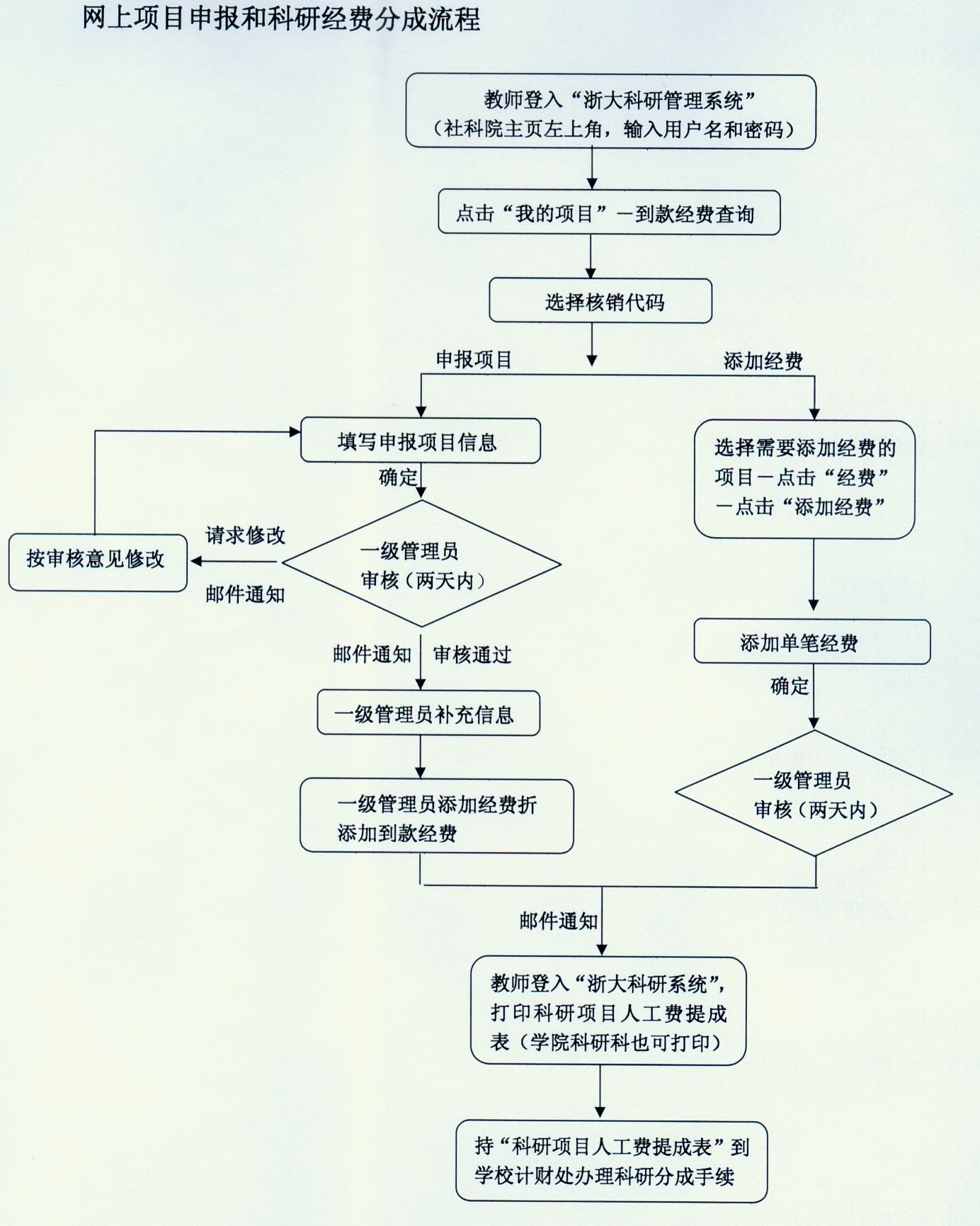 为了简化科研项目申报和科研经费办理流程,减少因空间地域造成的人力和物力耗费,社会科学研究院对“浙大科研管理系统”(人文社科版)中原有模块功能进行了优化和升级,新增“到款经费查询”、“申报项目”、“添加经费”三大功能。即日起教师可在网上办理相关业务(外拨经费除外),请各位老师相互转告。