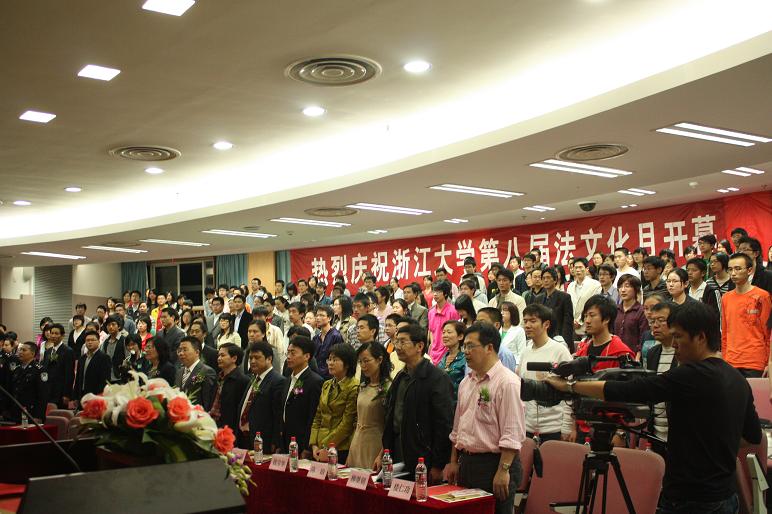 2009年4月20日晚19点,浙江大学第八届法文化月开幕式暨“2009杭州生活品质——平安生活点评发布”和“法官、检察官、律师法治命题三人谈”开坛仪式在紫金港校区国际会议中心140室隆重举行,由此第八届法文化月活动正式拉开序幕。本次活动由浙江大学党委宣传部、浙江大学党委学生工作部、浙江大学党委研究生工作部、共青团浙江大学委员会、浙江大学之江校区党工委、浙江大学紫金港校区党工委、浙江大学光华法学院、浙江大学紫云学园和浙江大学求是学院丹青学园共同主办,由浙江大学光华法学院团委、浙江大学学生会之江校区分会、浙江大学光华法学院学生会、浙江大学光华法学院研究生会、浙江大学光华法学院博士生会、浙江大学紫云学园学生联会、浙江大学学生法学研究会、浙江大学光华法学院法律硕士协会和浙江大学光华法学院学生通讯社共同承办,受到了学校领导和社会各界的积极支持和广泛关注。