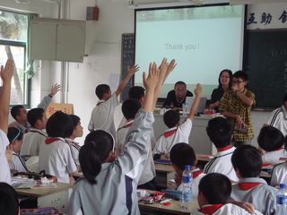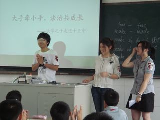 当天下午,志愿者们一行18个人在光华法学院团委书记吴卫华老师、团委书记助理成晓鹏老师的带领下来到杭州市十五中西溪校区。十五中的团委书记包宏老师到大门口热情迎接了我们的志愿者们。