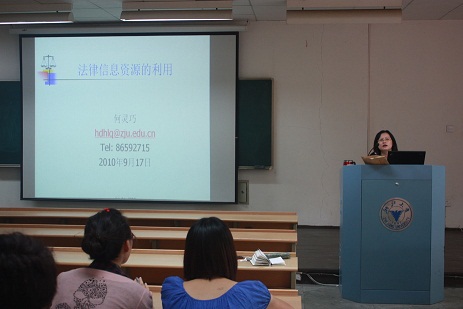 讲座中,何老师从图书馆介绍、流通指南、法律信息资源检索、数字资源、注意事项五个方面向同学们详细讲解了法律信息资源的利用。我院法学图书馆现有纸质图书7万余册,期刊资料方面中文191中,台湾16中,外文12种,在管理模式上坚持统一系统、统一采访、统一流通,为同学们提供了很大的方便。何老师指出,新馆建成后,我们的图书馆还将得到更大的发展,图书馆的服务水平、硬件设施、网站建设、馆际流通都将登上一个新的台阶。随后,何老师还向大家介绍了法律文献的检索、数字资源的利用,不论是布尔检索法、还是典型数据库的使用方式,都对同学们帮助良多。讲座中穿插的典型案例、数据库使用演示使得整个讲座更加生动、详实。何老师还强调,同学们应该好好利用法学分管图书馆的资源,同时重视整个浙江大学图书馆的综合资源,尽最大可能地充实自己的学习生活。