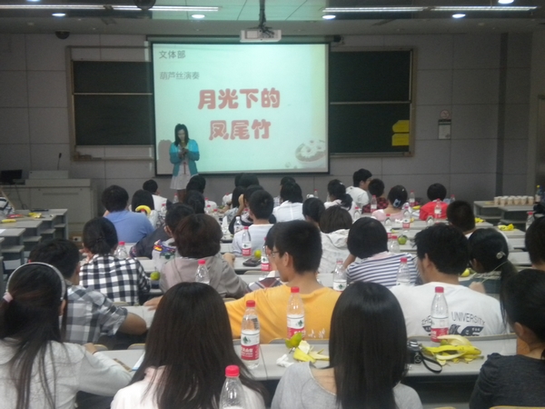 紧随其后,破冰联谊正式开始。各部门纷纷展示自己的风采。首先是资源联络部的干事们带来的《换大米》,由于整首歌是有很多歌曲拼凑而成,所以难度很大,但同学们依然竭尽全力地为我们奉上了一场视听盛宴。办公室和文体部的同学们也是创意十足,分别为我们带来了幽默有趣的舞台剧《非诚勿扰》和《昭君出塞》,他们生动形象的表演,以及巧妙的编排,让在坐的同学捧腹大笑。当然,文体部人才济济,一位文静可爱的女生为我们演奏了优雅的葫芦丝曲目——《月光下的凤尾竹》,让我们为之深深陶醉,仿佛真的置身那一片融融的月光之下。宣传部的节目也别具特色,改编版的《爱情买卖》,少了原来的温柔与缠绵,而成了豪气雄壮的塞外歌曲,着实让人眼前一亮。而学术部的同学们更是匠心独具地跳起了《甩葱舞》,动感十足,充满韵味。最后是实践拓展部,他们带来的是舞台剧《皇帝VS刺客》,大话了一把秦朝历史,让现代的思维和古代的时空完美结合,抛出了一个又一个包袱,让人赞叹不已。