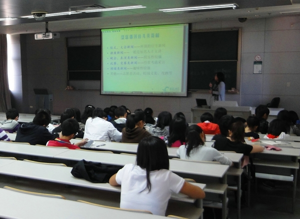 终于在主持人的宣布与介绍中,第一位讲师率先登场。她是来自求是潮新闻资讯中心的高级编辑、总监助理夏舒敏。作为"资深"的记者,她为我们讲授的是新闻稿的写作及前期采访。课程大致分为几部分:新闻本身的介绍、新闻的发现、新闻现场、新闻写作以及一些新闻制作过程中的小技巧。尽管时间有限,但学姐仍然尽可能的将她的经验与建议传授给我们,让我们对新闻有了全新的认识。接下来活动策划书写的培训,由光华法学院学生会紫金港分会主席徐建为我们讲解。他就活动流程、形成步骤、构想成型、文字呈现几个部分做了理论讲授,最后辅以优秀活动策划的实例,让我们得到全方位的理解。当然,两位“教授”的课程结束之后都有台下“学子”的问题咨询。在两位的耐心解答下,大家的疑惑也得以一一消除。