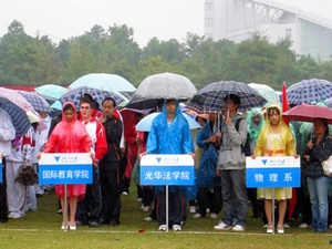 2010年10月23日,浙江大学2010年运动会开幕式在紫金港校区东田径场隆重举行。由于天气原因,原定的入场式被取消。虽然天公不作美,气温有所下降,天空也飘起了绵绵的细雨,但却无法浇灭我们的热情,无法驱散我们的兴奋。出席本次开幕式的学校领导有校党委书记张曦、校长杨卫院士、校党委副书记郑强、副校长褚健、张土乔、吴朝晖、罗卫东等。参加本次开幕式的还有在全国、全省大学生各项体育竞赛项目中取得冠军荣誉的运动员代表,学校各学部、各部门、各单位的负责同志。上午8点整,校运会开幕式正式开始,郑强主持开幕式。校长杨卫在开幕式上亲切致辞,随后,校党委书记张曦宣布浙江大学2010年运动会正式开始。