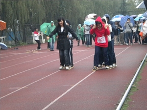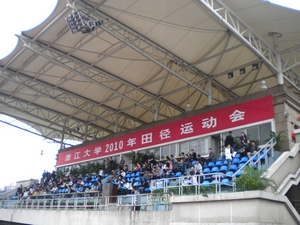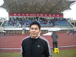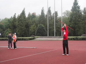 在这长达2天的比赛中,参与了100米、800米、5000米、5公里定向越野、60*10混合接力、60米三人板鞋、铅球、铁饼、标枪等诸多项目,并且充分发扬了我们运动会的口号:光华健儿,卧虎藏龙!其中汪李明在研究生男子组跳远中荣获亚军,在研究生男子组100米中获得了第五名,陈小红和蒋科存分别在本科女子组铁饼和本科男子组标枪中获得第三名和第八名。研究生汪李明,今年已经30多岁,曾经工作过很多年然后通过自己的努力又考上浙江大学的研究生,重新回到学校学习。他也像我们一样对运动充满热情,喜欢各种活动,来到浙大的三年运动会是每年必会参加的活动,他对未来充满美好的向往,希望丰富自己的人生经历!而且今年妻子和母亲也前来为他助阵加油更是为他带来了无穷的动力。