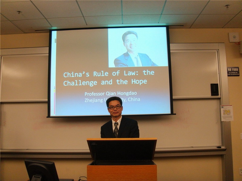 2010年10月28日,应斯坦福大学(Stanford University)方面的邀请,钱弘道教授在斯坦福大学作演讲,主题是《中国法治的挑战和希望》。这是钱弘道教授第二次赴斯坦福。2008年,钱弘道教授应美国著名法学家Michael Klausner之邀,在斯坦福做高访。