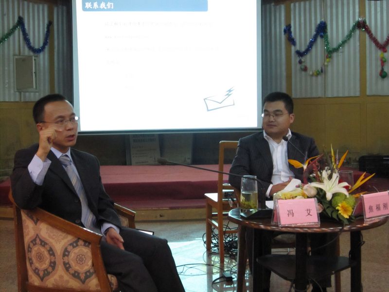 2010年11月1日晚,在浙大之江校区李作权活动中心多功能厅金杜律师事务所合伙人焦福刚律师、冯艾律师为同学们带来了一场精彩的律师执业生涯的演讲。