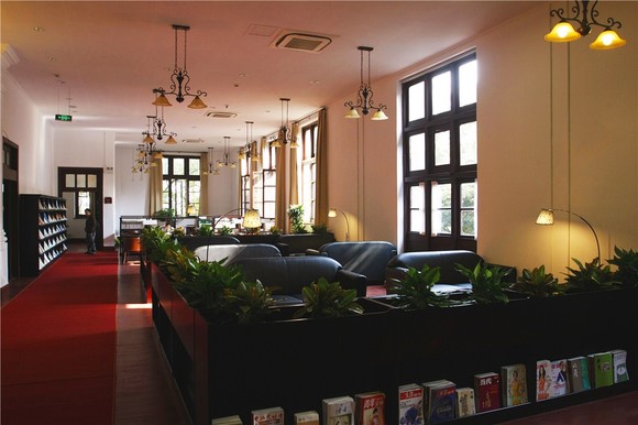 图书馆的陈设布置优美雅致,原木色的书桌、皮质的沙发椅、光线柔和的台灯、古老的雕花吊灯、色泽古典的落地灯、整齐的书架,似乎能够感受到历史的幽深和博大。图书馆里还设置了公法与比较法资料中心、期刊书架、音乐休闲区、讨论区、港澳特色书库、陈列室等等,使图书馆的功能多样化。图书馆经过修缮后,还安装了开水器、直饮水、自动借还书系统、自助打印服务系统、无线网、自助查询系统、电子存包系统等等硬件软件设备。工作人员告诉我们,图书馆的开放时间为上午8:30到晚上9:50,周五下午和晚上闭馆。