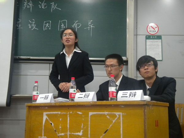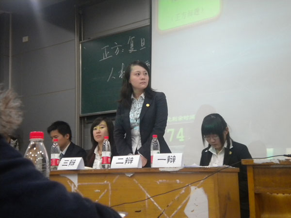 复旦大学与浙江大学辩论交流赛终于在11月19日晚6点30分,西一101,火热地拉开了帷幕。此次参加的辩论的是浙江大学校辩论队的皮鑫、迟浩原和吴钰龙,复旦大学校辩论队的陈懿、石一瑛和乔雪。双方都是参加过国辩的重量级选手,这就注定了这次辩论交流赛的精彩。本次的评委有光华法学院团委副书记成晓鹏,浙江大学辩论队教练严亘晖,前求是辩论社社长刘旭昀和谢飞。