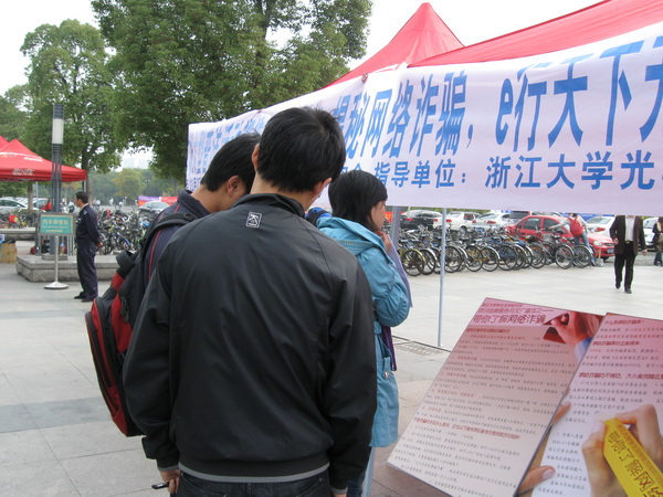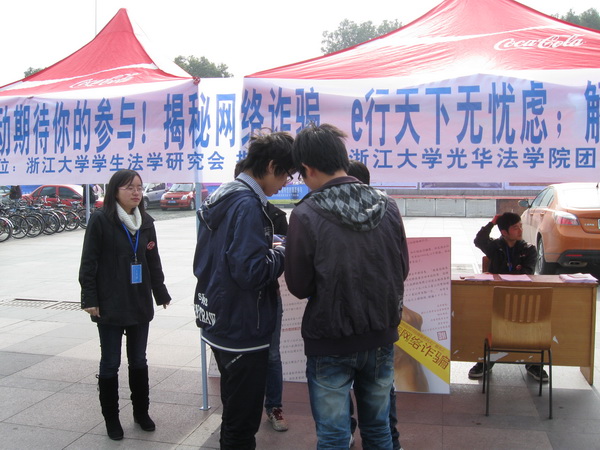 揭秘网络诈骗 e行天下无忧虑――记浙江大学学生法学研究会2010年法律服务月之文化广场普法活动(第一场)