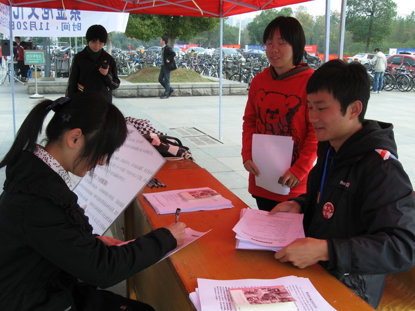 2010年11月20日,浙江大学学生法学研究会2010年法律服务月之大型普法活动在紫金港校区文化广场顺利进行。
