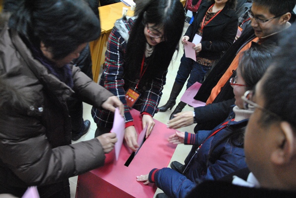 大会的第四个阶段:大会选举,由大会执行主席费英勤同志主持。首先由全体代表通过了选举办法以及大会总监票人、总计票人和监票人、计票人名单,继而由全体代表进行了选举,经过将近半小时的计票,大会胜利选举出新一届的学院党委委员。大会执行主席胡炜向全体代表宣布党委委员当选人名单如下(以姓氏笔画为序):方立新、许建宇、阮方民、吴勇敏、张子法、胡炜、费英勤。