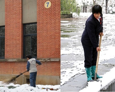 初雪降之江 后勤扫雪忙――记校区后勤人员扫雪除冰服务师生