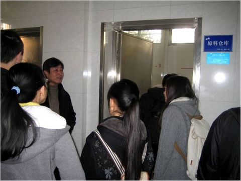 在徐经理的带领下,同学们有序参观了食堂的面食加工车间,洗刷间,炒作间等。在参观的同时,徐经理也向同学们介绍了原料加工流程,食堂的卫生管理状况及食品留样、农残检测等制度。