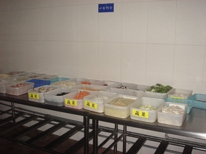在进入食堂操作间之前,食堂工作人员按规章要求对来访人员进行了登记,并引导膳管会的同学参观了仓储间、清洗间、炒作间、面食加工间。膳管会按照后勤部门的检查要求,对上述8大项进行了细致的检查。