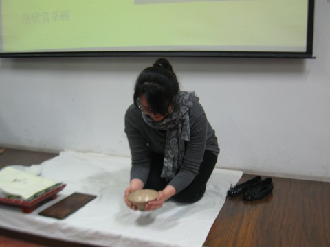 随着现场的气氛逐渐活跃,主讲人开始步入正题——韩国的品茶之道。主讲人首先带领大家一同欣赏各色形态各异的茶具,介绍各种差距的式样和功用,韩国人的茶室布置以及一些浅显的品茶礼节、做客之道。此番预热之后,大家期待已久的韩国茶艺表演精彩呈现出来。现场立马安静下来,在主讲人细致入微的讲解下,专业的韩国老师演绎茶道艺术,宛若一位大家闺秀,每一个动作都那般优雅、娴熟。此时,倘若再配上泛黄的暖暖的柔柔的灯光,耳边响起一段悠悠的轻音乐,那该是怎样一种雅致、清新的意蕴啊!在后面的日本茶道部分,主讲人也以类似方式为大家娓娓道来。