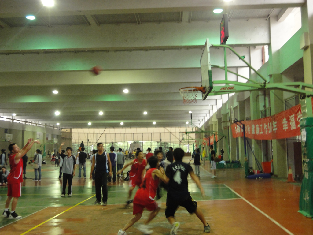 在裁判的一声哨响中,身穿蓝色球衣的光华法学院男子篮球队与身穿红色球衣的航空航天学院男子篮球队开始了争夺。或许是热身不够,比赛一开始,两边的队员似乎有些难以适应紧张激烈的比赛节奏,失误频频,比分也一直胶着。经历了一段时间的调整,光华法学院队率先找回节奏,在几次漂亮的快速反击中,确立了六分的领先优势。然而,航空航天学院队能在同组诸多对手中脱颖而出,显然也是实力不凡,他们落后之后的快速应对正体现了这一点,依靠6号球员与队友的几次默契配合,很快他们又将比分劣势追了回来。首节战罢,双方16:16不分伯仲。第二节的进程更为激烈,拼抢也更为凶狠,法学院凭借内线的高度优势屡屡得分,而航空航天学院队也在6号球员的率领下紧咬比分,整个第二节在双方的你追我赶中结束,30对32,法学院微微落后。