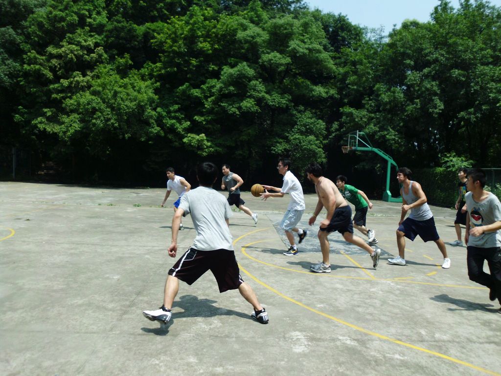 中午,烈日炎炎,炙热的天气却不能阻挡大家的热情。在王冠玺老师的带领下,法学院同学与对方同学在篮球场上展开了激烈的角逐。球场上异常热闹,加油欢呼声此起彼伏。双方队员们个个奋力拼抢,技艺超群,引得场下喝彩练练。经过四节的较量,光华法学院队遗憾地负于托马斯杰弗逊法学院队。然而,队员们杰出、努力的表现令比赛扣人心弦,精彩不断。