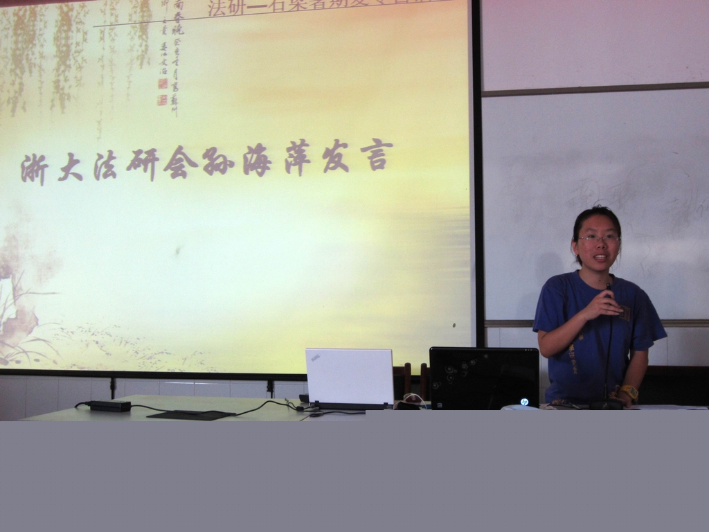 在欣赏了浙大学生法研的展示视频之后,学生法研会会长孙海萍代表学生法研会暑期实践团发言。孙海萍表示,作为优秀初中的石梁学子,需要更加主动地汲取各个学科的知识,以在这个瞬息万变的社会中立于不败之地。同时,孙海萍同学向在座的老师及同学介绍了浙江大学及浙江大学学生法学研究会。浙大学生法研会此次在衢州扎根,希望能够实实在在地为衢州,为石梁中学的发展贡献出一份力。最后,孙海萍同学向大家介绍了本次衢州实践活动的主要内容,活动将沿着两条路线分别开展,一条是在石梁中学的支教活动,将会采用专题授课、素质拓展及经验分享等多种形式,力求让石梁学子取得一个共识,即学习也可以是一件十分快乐的事;另一条则是对衢州的经济、教育以及法治状况的调研活动,希望能够提供给石梁地区的进一步发展提供一份翔实的调查报告,让此次实践承载更多的社会重量。