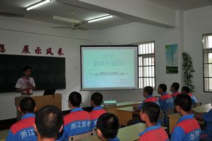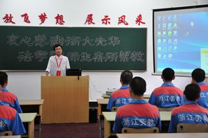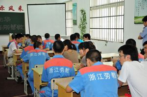 经过一个多小时的车程,大家来到了位于余杭区的浙江省未成年劳动教养人员管理所,刚下车,映入眼帘的是“欢迎浙大光华法学院同学来未教所帮教”几个大字。未教所团委书记张增富热情地接待了整个团队,并在会议室为大家举行了一个简短的欢迎仪式。会议上未教所的政委对浙江大学光华法学院和省未教所的长期共建的成果表示肯定。未教所的工作人员向大家简单介绍了未教所自建成使用后的发展历程和团建工作。尤其是之后一段宣传片让大家在声像中对未教所的情况有了一个基本的了解。