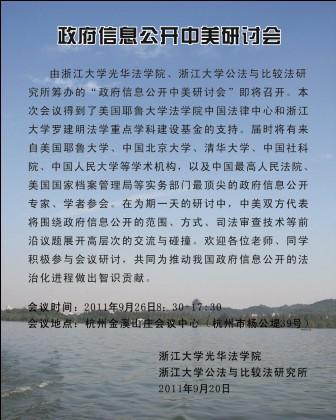 由浙江大学光华法学院、浙江大学公法与比较法研究所筹办的“政府信息公开中美研讨会”即将召开。本次会议得到了美国耶鲁大学法学院中国法律中心和浙江大学罗建明法学重点学科建设基金的支持。届时将有来自美国耶鲁大学、中国北京大学、清华大学、中国社科院、中国人民大学等学术机构,以及中国最高人民法院、美国国家档案管理局等实务部门最顶尖的政府信息公开专家、学者参会。在为期一天的研讨中,中美双方代表将围绕政府信息公开的范围、方式、司法审查技术等前沿议题展开高层次的交流与碰撞。欢迎各位老师、同学积极参与会议研讨,共同为推动我国政府信息公开的法治化进程做出智识贡献。