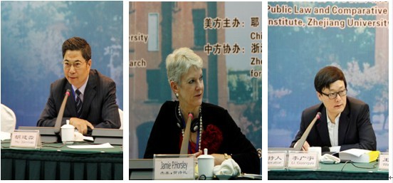 开幕式由浙江大学光华法学院常务副院长朱新力教授主持。中国法学会行政法学研究会会长、中国政法大学终身教授应松年教授、耶鲁大学法学院中国法律中心副主任贺诗礼(Jamie P. Horsley)教授、国家行政学院法学部主任胡建淼教授和最高人民法院行政庭李广宇副庭长先后致辞。应松年教授首先对会议的顺利召开表示热烈祝贺,并希望与会的中方代表充分利用本次研讨机会,积极地向美方嘉宾请教美国政府信息公开制度建设的经验。贺诗礼教授对主办方盛情邀请美方教授一行参会表示诚挚感谢,并呼吁与会代表通过本次会议的研讨,致力于解决中美双方在信息公开问题上所面临的共同课题。胡建淼教授表达了其返回浙江大学参会的深切感受,同时强调政府信息公开制度建设对于国家民主法治进程的积极推动作用。李广宇副庭长对中美双方学者长期以来积极推动中国政府信息公开制度建设表示感谢,并期待通过本次会议的研讨为中国信息公开制度的实践运作提供新的智力支持。