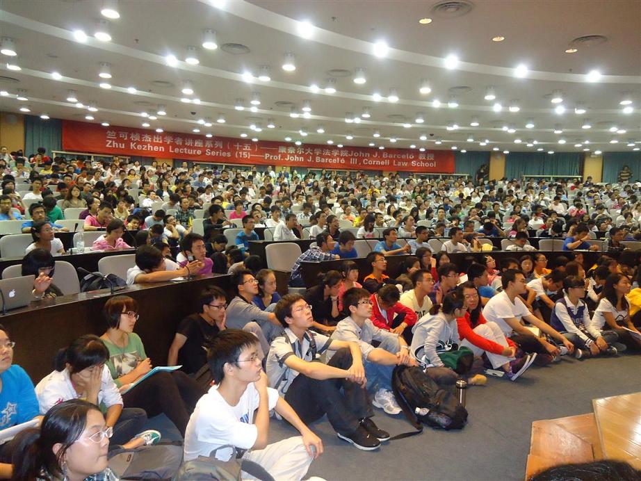 聆听此次讲座的同学,来自不同的专业院系,许多同学席地而坐,现场气氛十分热烈。全校数百名师生的积极参与,全场热情高涨,座无虚席。浙江大学副校长兼光华法学院院长罗卫东教授及光华法学院常务副院长朱新力教授出席了此次讲座。罗副校长代表浙江大学对Barceló教授的来访表示热烈欢迎和诚挚感谢。浙江大学国际法研究所副所长赵骏老师主持此次讲座,并且担任同声传译,使同学们更加贴近了解讲座内容。
