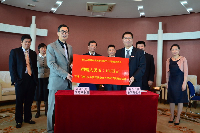 浙江天册律师事务所向浙江大学教育基金会(光华法学院教育基金)捐赠100万元