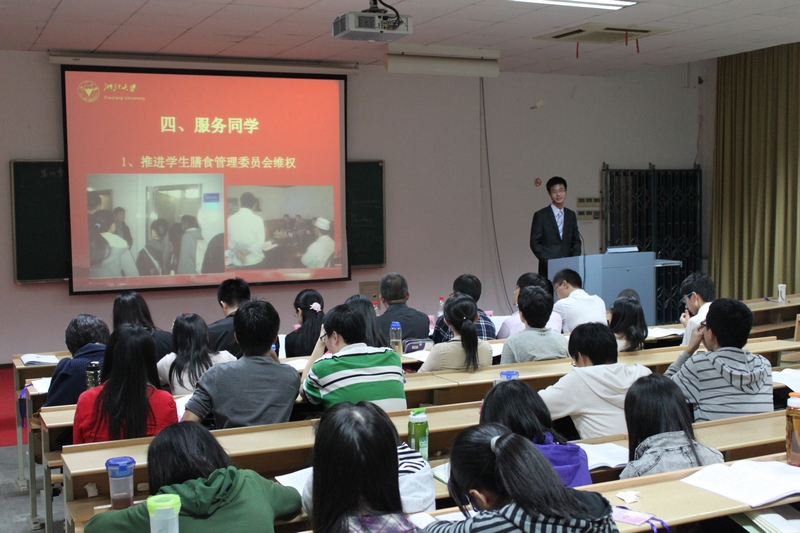 各项审议工作过后,大会顺利进行到了选举阶段。在本阶段将选举产生了浙江大学第十二届学生会主席团成员。经过预选会议后,共有8位候选人有资格参与竞选。各位候选人进行了三分钟左右的演讲,大致从自我介绍、工作经历、工作设想等方面进行了阐述,并提出了不少解决现实存在问题的初步设想方案,通过演讲以及提问环节,向代表们展示了自我。