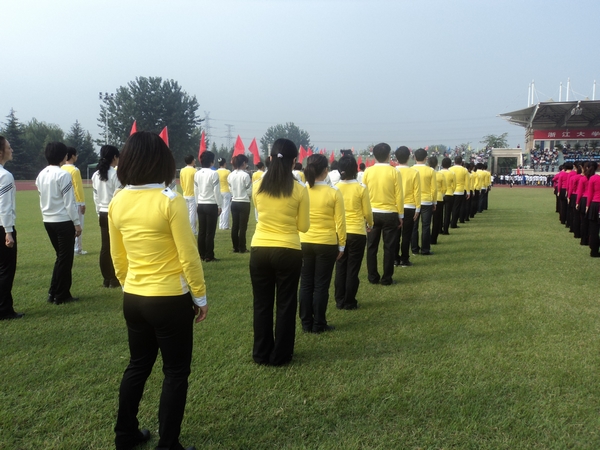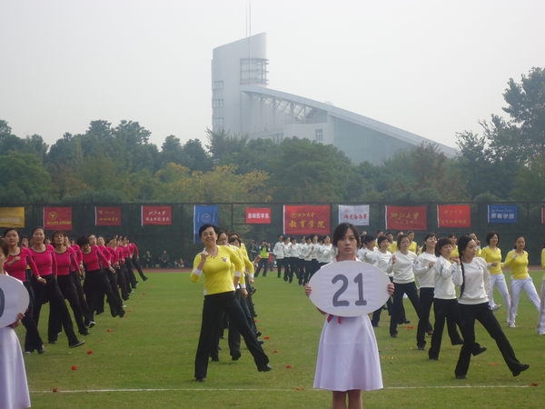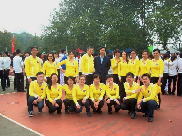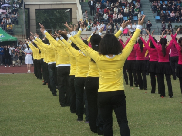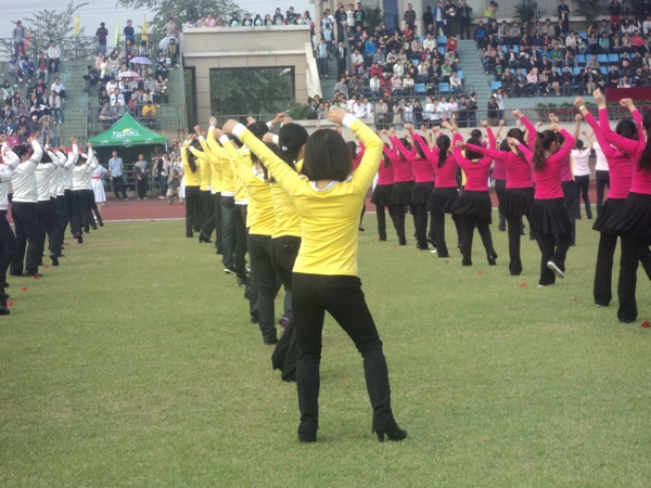 一年一度的校运会开幕式上五百余名教职工组成23支代表队参加了排舞比赛,光华法学院的教职工代表队由7名男老师和12名女老师组成,经过几个星期的精心排练,在校运会上发挥出色,勇夺最佳组织奖。
