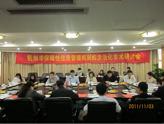 本次会议围绕浙江省保障性住房管理机制的法治化问题展开讨论,旨在通过研讨促进立法的进一步完善,解决在当前房价居高不下的情况下,保障性人群的住房难问题。会上,方立新教授做了主旨讲话,他指出,保障性住房问题,实质上是解决公民的居住权问题,并就当前房价居高不下,房产资源分配配置不当等问题做了深入探析。之后,与会代表纷纷围绕“保障性住房保障范围的确定”、“住房保障体系的健全”、“保障途径的市场化”等热点问题,以及“住房保障收入审核难”、“经济适用房的违规出租查处难”和“廉租住房的实务退租难”三大难点问题展开热烈讨论。会场气氛烈,发言踊跃,大家纷纷献言献策,为推进保障性住房法规政策的制定,完善保障性住房建设、管理和使用制度,提出建议,贡献智慧。。