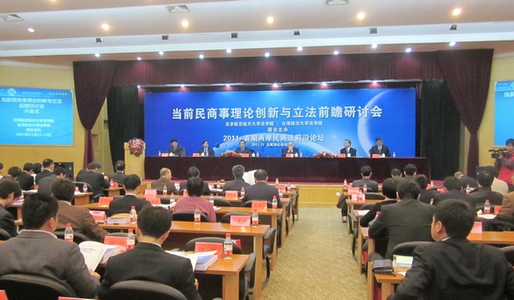 2011年11月12日至13日,由北京航空航天大学法学院和台湾政治大学法学院联合举办的“当前民商事理论创新与立法前瞻”研讨会在北京航空航天大学举行,来自北京航空航天大学、中国政法大学、中国人民大学、北京大学、清华大学、中国社会科学院法学研究所、浙江大学、复旦大学、上海交通大学、厦门大学等以及来自台湾政治大学、台湾大学、台湾成功大学、台湾中正大学等数十所海峡两岸的大学、学术机构的近百位知名民商法专家学者出席了此次会议。我院张谷教授、周江洪副教授应邀参加了此次研讨会。