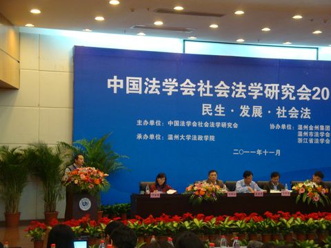 2011年11月12至13日,以“民生•发展•社会法”为主题的中国法学会社会法学研究会2011年年会在温州大学隆重举行,200余名与会代表围绕“当代中国发展、民生与社会法基础理论”、“‘劳工三权’与集体劳动关系法律规制问题”、“《劳动合同法》和《社会保险法》的配套立法和实施问题”、“教育法、卫生法、基本住房保障法相关问题”、“民营经济劳动关系问题研究”、“劳动法学、社会保障法学的体系与教学问题研究”等六个议题展开了热烈深入的讨论。