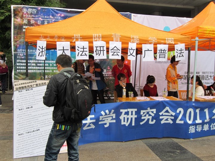 普及法律知识,解答法律疑惑――记浙江大学学生法学研究会2011年法律服务月之文广普法活动