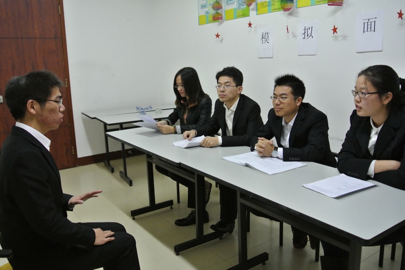 2008级本科生即将毕业,找工作成为很多同学的第一选择,而面试则是取得offer的必经之路,面试技巧在很大程度上决定了获得工作的成败。为了还原真正的面试场景,当晚到场的同学都穿上了正装,并在前期做足了准备。
