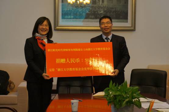 阳光时代律师事务所合伙人律师郝利、李凌云,事业发展部总监陈国强,知识管理经理阮宏,律师董储幸,浙江省司法厅律管处副处长杨健,浙江大学公共管理学院教授余潇枫,学院党政办公室、本科生教育科、团委负责任人以及部分师生出席了捐赠仪式。