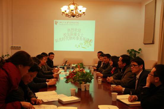 陈臻主任介绍了阳光时代律师事务所的情况,并感谢先生余潇枫教授给予的大力支持。她指出法律事业必须要以人文素养的提升为前提。陈主任以身作则,为更好的实现法治建设起到了表率作用,以实际行动回馈社会。