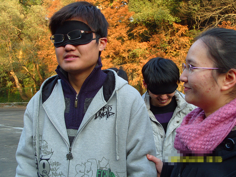 简单的休息后,活动进入到了下一个阶段,本次活动的重头戏——“信任之旅”开始了。原来分好的两组同学一组全部戴上了眼罩,在另一组的同学的引导下向活动的另一个场地——田径场进发,同时,在此环节中,参与同学均不允许说话。平时大家每天经过的路线,在这一段不到十分钟的历程中显得特别漫长。戴眼罩的同学仿佛进入了盲人的世界并把自己交给了引导自己的同学,而引导的同学则肩负着“沉重”的责任,小心翼翼地引动戴眼罩的同学抵达目的地。在全部同学到达田径场后,大家围坐一圈,在主持人的引导下展开了体验分享,大家互相坦诚真实的感受,在欢乐中获得启发。在此以后,参与同学又以小组为单位进行了两项情景模拟的挑战项目,“同舟共济”与“卓越圈”。这两个项目从战略规划到流程设计到把握细节到齐心协力完成一个目标均考验着大家的团队协作能力。