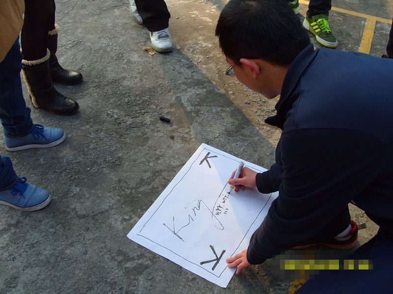 在参与同学通过“1、2”报数分为两组后,活动环节拉开了帷幕。第一个热身小游戏叫“抓手指”,主要考验参与者的协调和反应能力,不少同学不是没能“逃脱”就是没能抓住相邻同学的手指,并因此接受了事先准备好的小“惩罚”。现场一片欢声笑语,氛围迅速热烈起来。紧接著,大家在主持人的引导下开始了第一个有挑战性的项目——“万里长城永不倒”。这个项目要求参与者在主持人的“1、2、3、4”的口令下最终围成一个圈,并且所有人均需要坐在后面人的腿上。在连续两次挑战失败后,大家纷纷开始献计献策,发挥着团队的智慧。最终,在达到要求环坐成一圈坚持了45秒后,参与同学们挑战成功。多位同学在随后的分享发言中谈到,这个项目考验的是团队的凝聚力和合作能力,并且要求大家彼此的充分互相信任。在活动的第三个环节——“松鼠与大树”进行完毕后,主持人引导大家开始了组建小组文化的环节。两组同学分别选出队长、副队长、后勤人员,确定小组LOGO、组名、组歌、口号等。在这个环节中,两组同学彼此均展示了各自的团队精神与良好的团队氛围,感受到了浓浓的集体荣誉感,体验到了无穷的欢乐。