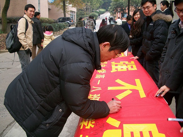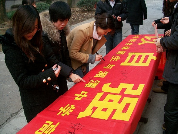 2011年12月19日,由光华法学院研究生会外联部、权服部主办的“祝福传千里青春梦飞扬”签名活动,在浙大之江校区学生公寓12舍前成功举办。
