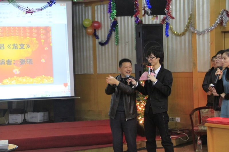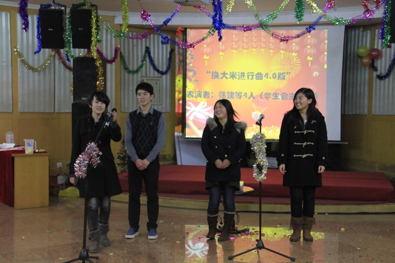 悠扬的钢琴声、舒缓的曲调、低沉而富有磁性的嗓音,入情入境的演唱,徐博峰同学带来的《圣诞结》和《新不了情》陶醉了现场的观众。由研究生会主席团吴京等4人欢喜演唱的《恭喜发财》让我们深切感受到了敲锣打鼓欢度新年的喜庆;学生会主席团徐建等4人为晚会带来了改编后的《换大米进行曲4.0版》,每一句歌词配上应景的动作,颇为用心;博士生会的王侃如等4人带来的歌曲串烧,让我们饱餐了一连串的怀旧金曲。《龙文》透着浓浓的中国风,蕴含着传承国学、企盼团圆的美好祝愿,配上张曦圆润婉转的嗓音,震慑全场。之江广播台的杨桦和刘默金同学带来的相声表演《拴娃娃》着实逗乐了全场观众,大家掌声不断,笑声连连。