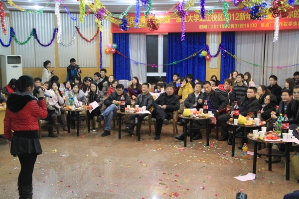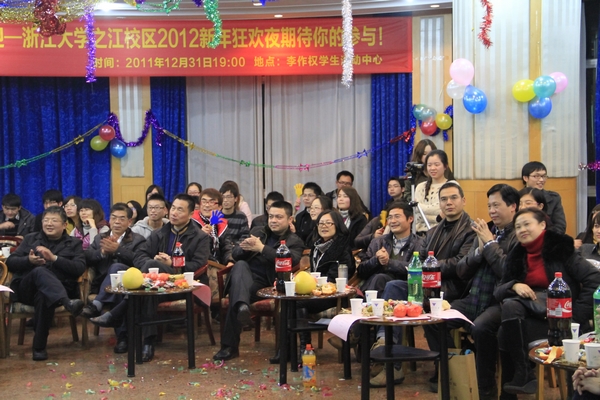 “新年晨曦,你我共迎”,2011年12月31日晚,浙江大学之江校区2012新年狂欢夜在李作权学生活动中心缤纷上演。浙江大学副校长兼光华法学院院长罗卫东,光华法学院常务副院长朱新力,光华法学院党委书记、之江校区党工委书记、管委会主任胡炜,校办副主任陈肖峰,后勤集团副总理王国强,之江校区党工委副书记胡奎,光华法学院党委副书记吴勇敏,光华法学院副院长梁上上,保卫处助理周建军,班主任和德育导师代表韩家勇、胡铭、兰荣杰,党政办主任林俐,图书馆法学分馆馆长何灵巧,光华法学院团委书记吴卫华,团委副书记成晓鹏等学院领导、老师参加了此次晚会。光华法学院全体师生齐聚一堂,共同表达对新年的祝福,喜迎2012年的到来。