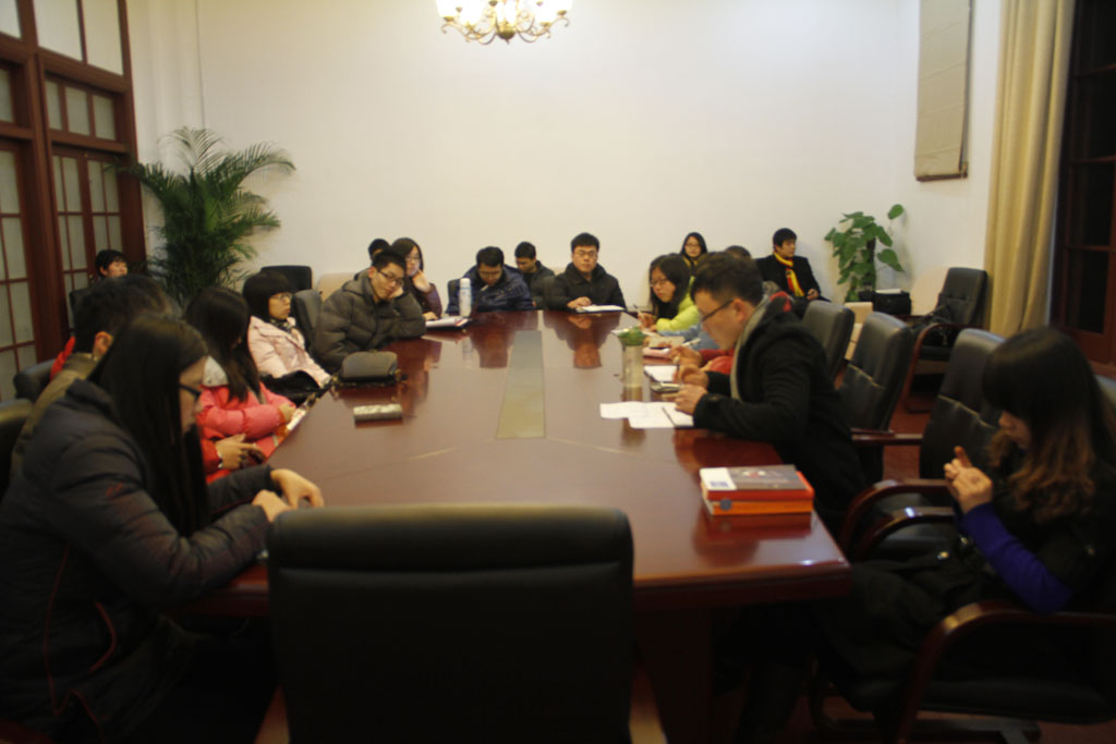 2012年2月15日晚,光华法学院在主楼203会议室召开了开学初学生思想动态调研会议。光华法学院研究生教育办公室陈静老师,团委副书记成晓鹏老师,团委挂职副书记陈益凤、马俊彦以及各学生组织负责人、各班学生代表参加了本次会议。