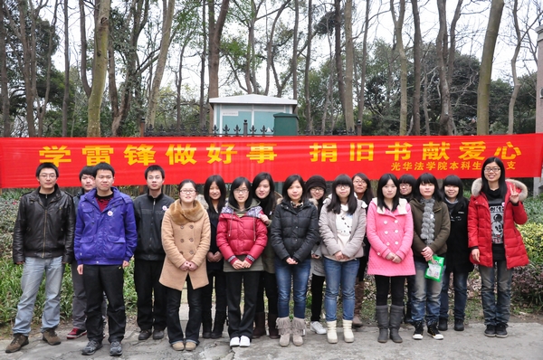 今年是雷锋同志逝世50周年,为进一步引导我院广大青年学生弘扬雷锋精神,在服务中践行“奉献、友爱、互助、进步”的志愿者精神,以实际行动迎接建团90周年,光华法学院本科生团总支积极响应校团委“人人都来学雷锋”的号召,开展了“变废为宝 筑爱心角”的志愿者活动。