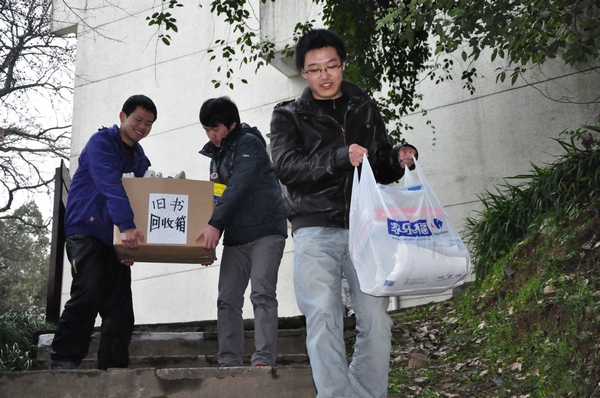 3月9日下午,经过前期的大力宣传,共有二十余名志愿者参与到了本次学雷锋活动的“收书”环节。他们五至六人分为一组,分别进入8舍至13舍四栋宿舍楼,向寝室里的同学阐述活动的意义,鼓励他们捐献旧书,献出一份爱心。活动中,两三个志愿者们一起扛着巨大的纸板箱,其余同学则小心翼翼地将旧书放入箱子内。法学院学子对活动充满了热情,在短短的一个多小时内,就收集了百余本各类旧书,预先准备的箱子已经放不下,很多志愿者的手里也抱着许多旧书。收书活动成果颇丰。