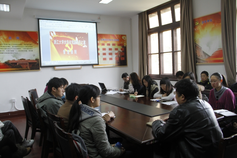 2012年3月14日中午,光华法学院管理委员会“党员之家”成立仪式在之江校区4号楼309举行。学院党委书记、校区党工委书记胡炜,组织人事科科长冯利君,本科生、研究生党总支副书记吴卫华,研究生党总支秘书陈静,本科生党总支秘书成晓鹏等领导和老师出席了会议。