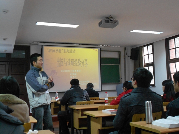 2012年3月11日,开学以来难得的阳光明媚,也终于让大家感受到一丝春天来临的气息。趁着这美好的时光,浙江大学光华法学院本科生团总支于下午2点在之江校区3号楼202教室举办了“职业导航”系列之出国与读研专场活动。本次专题讲座由浙江大学光华法学院团委主办,学院本科生团总支承办。