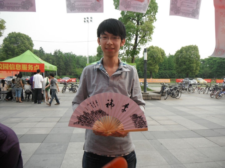 中午在文化广场刚做好场地的相关准备工作,就有路过的同学前来参加,开始认真地作起扇面画。随后,前来参加的同学越来越多。同学们对扇面画这一形式表现出了极大的兴趣,同时也十分乐意亲手DIY扇面,作为这个夏天的一份小礼品。从回忆思索自己的浙大生活,到构思扇面的图案设计,再到在扇面上的认真绘画和书写,大家的认真和投入使得这次活动更加具有意义。