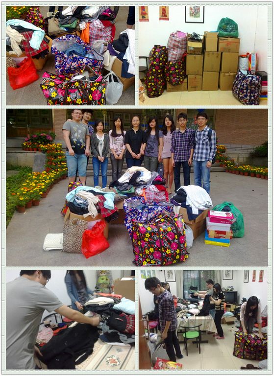 十四名志愿者二人一组,参与到了本次回收旧衣服的宣传环节,他们分别进入8至13舍5栋宿舍楼,向寝室里的同学阐述活动的意义,鼓励他们捐献旧衣、献出一份爱心。同学们纷纷响应号召,表示愿意将自己的衣服捐给需要的人,让他们过一个温暖的冬天。当日晚,寝室楼下的“旧衣回收箱”内就整齐得放满了同学们捐献的衣服。接下来的五天,志愿者们继续以高度的热情积极主动地投入到活动中来,负责各个栋寝室楼的志愿者每晚将旧衣服回收整理、集中存放,以便最后的整理运送。