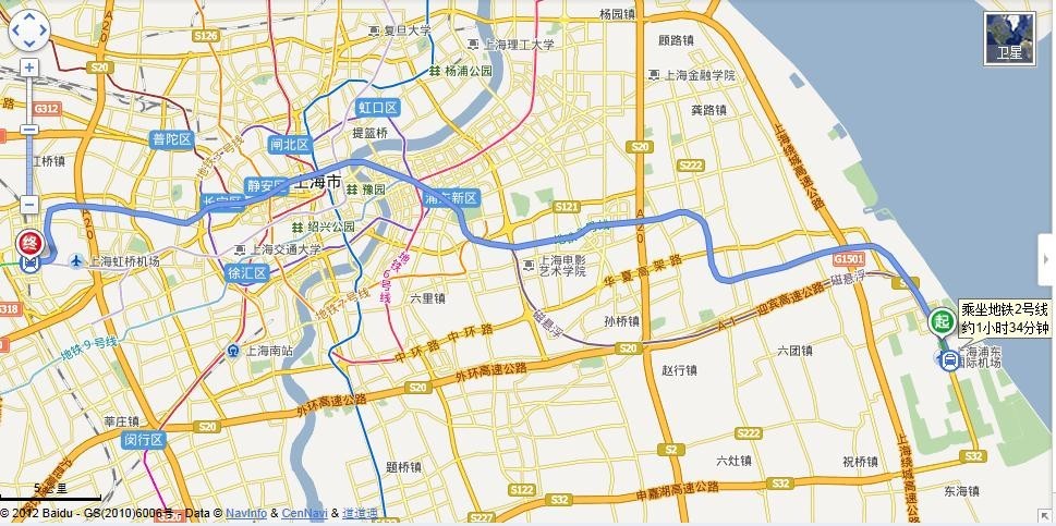 乘坐 地铁2号线 全程约2小时 / 58.3公里;