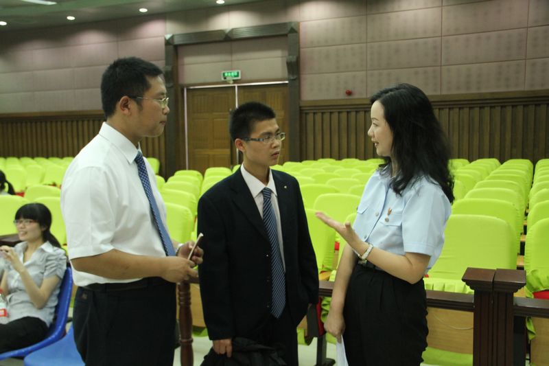 在王主任的指引下,我们来到了法院的会议室。王主任首先给我们介绍了素有“鱼米之乡”、“丝绸之府”之称的“人间天堂”的杭州。随后,又向我们简单介绍了上城区人民法院的人员组成、数字化法庭建设和案件审理情况等。大家吹着江风,听着王主任的讲话,仿佛游历在法的海洋之中,感受着公平与正义的理念。